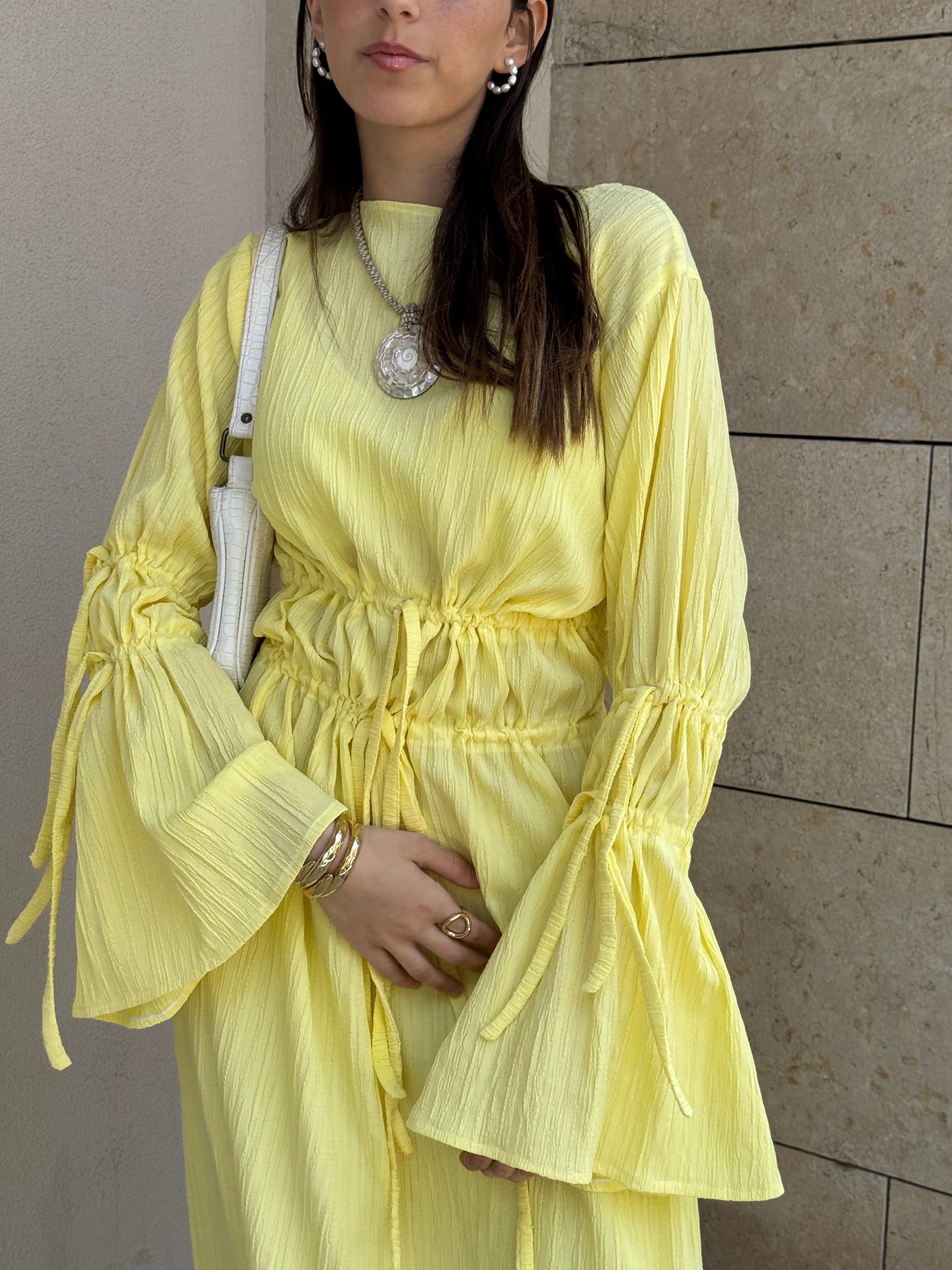 crinkled maxi dress, with waist & sleeve straps for a defined casual look 🌻