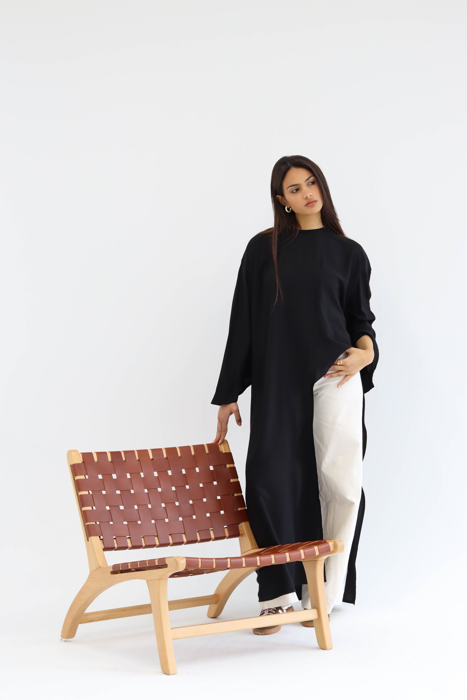 a flowy asymmetric long top that can be styled in many different ways, a top that is modest, light & easy to style