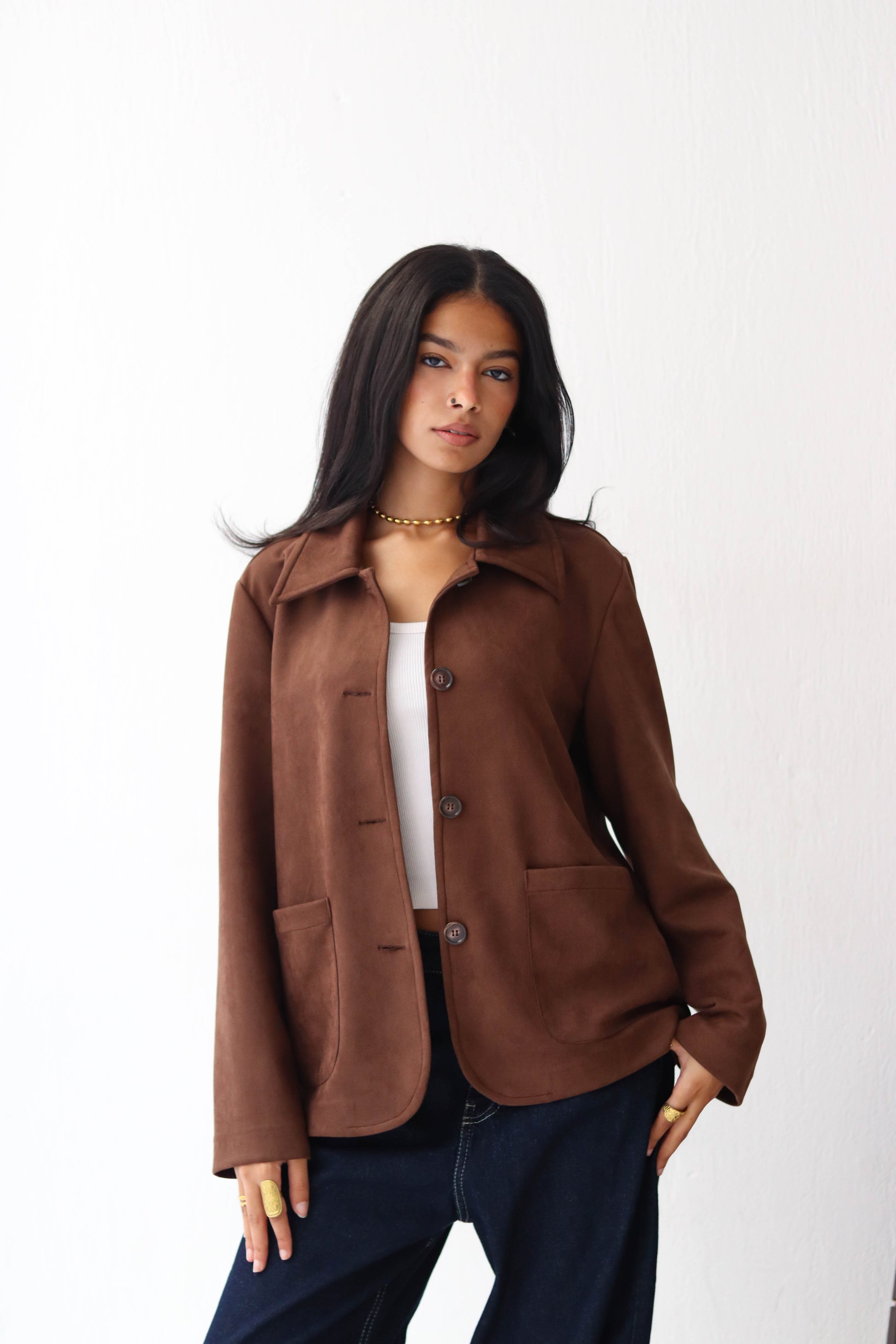 Suede button jacket in Brown